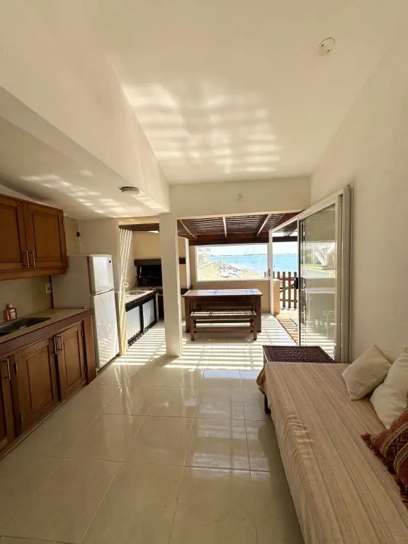 Divina casa sobre el mar en Bahía Chica, con 4 dormitorios con baño en suite, son 2 dormitorios con cama matrimonial y 2 dormitorios con cama marinera. Luminosa y con vista al mar de todos los ambientes, cocina completa, parrilleros y barbacoa con horno de pan y vista al mar, fogon de piedra sobre el mar, terrazas con hamacas paraguayas, equipada 100%, sabanas y toallas en todas las habitaciones, living y comedor independientes, terrazas techadas y todo el confort. Se alquila mínimo 2 días.
